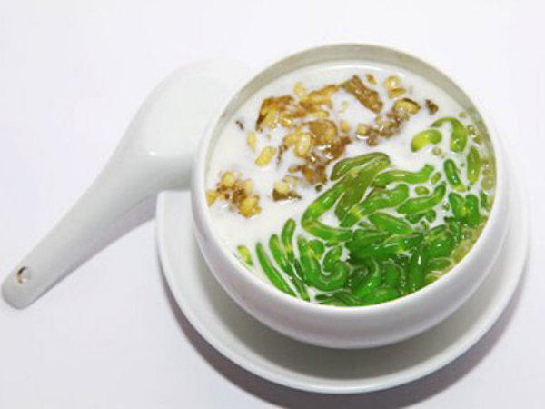 Chè thái xanh sữa dừa là loại chè thái phổ biến ở nước ta. Phần chè mát lạnh, sợi bột mềm, dai, lại có thêm thạch sương sáo sần sật, nước cốt dừa béo béo rất thơm. Món chè này có hình thức và vị khá giống với món chè bánh lọt của miền Nam.